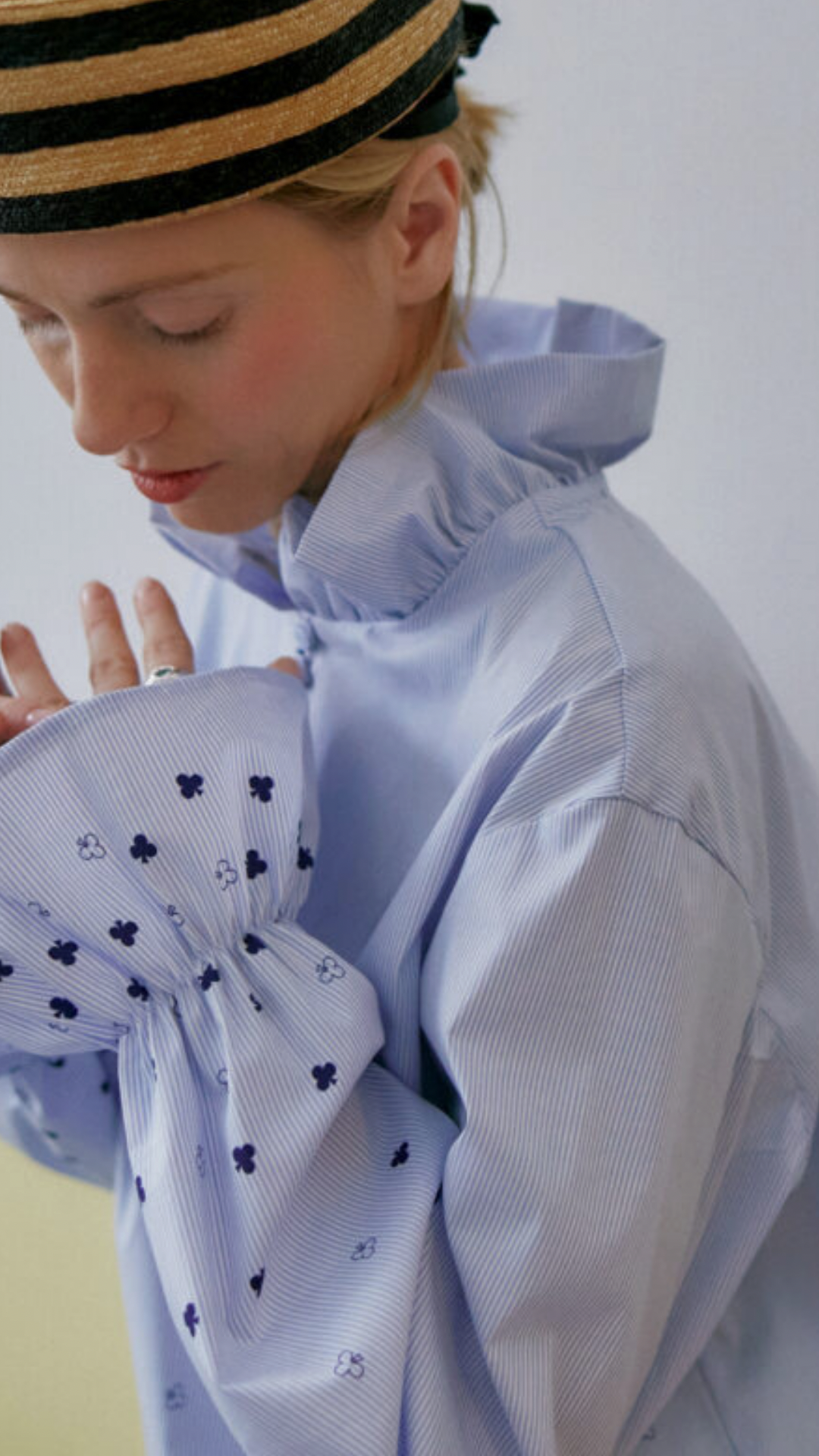 ♣️ This ruffle shirt is made of high-quality cotton with a very delicate, thin stripe.